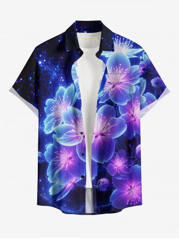 Plus Size Galaxy Flowers Print Buttons Pocket Hawaii Shirt For Men - Deep Blue - 3xl