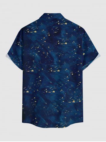 Plus Size Galaxy Moon Star Print Buttons Pocket Hawaii Shirt For Men - Deep Blue - S