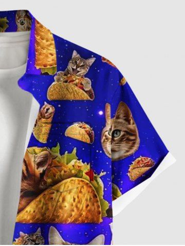Plus Size Galaxy Ombre Cat Potato Chips Print Buttons Pocket Hawaii Shirt For Men - Purple - S