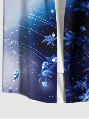 Plus Size Galaxy Ombre Star Leaf Print Buttons Pocket Hawaii Shirt For Men - Blue - L