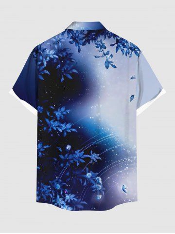 Plus Size Galaxy Ombre Star Leaf Print Buttons Pocket Hawaii Shirt For Men - Blue - 6xl