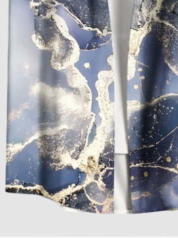 Plus Size Galaxy Satellite Map Print Buttons Pocket Hawaii Shirt For Men - Gray - M