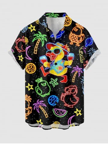 Plus Size Galaxy Star Coconut Tree Ducks Watermelon Print Buttons Pocket Hawaii Shirt For Men - Black - 4xl