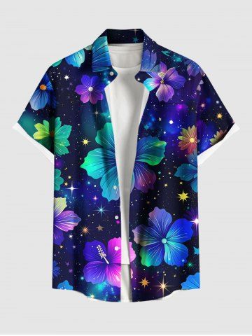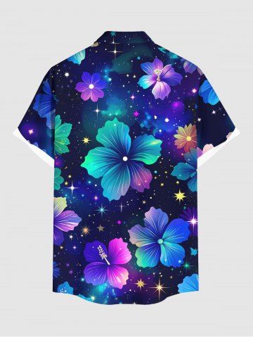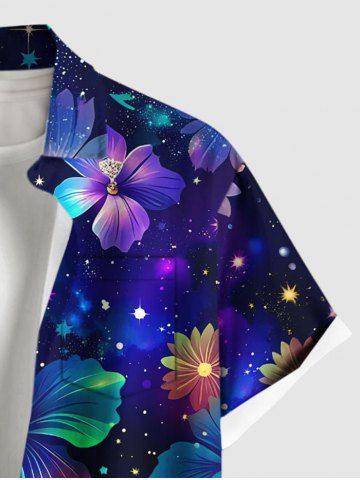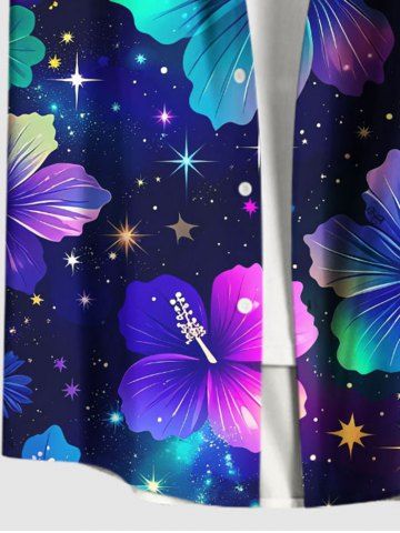 Short Sleeves Shirts > Plus Size Galaxy Star Hibiscus Flowers Print Buttons Pocket Hawaii Shirt For Men