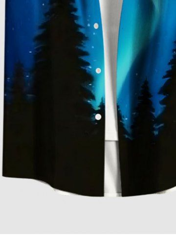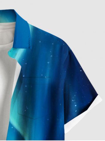 Plus Size Galaxy Star Trees Light Beam 3D Print Buttons Pocket Hawaii Shirt For Men - Blue - M
