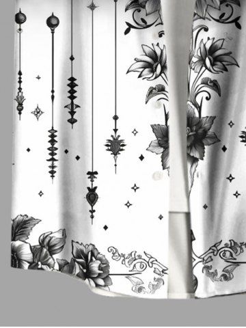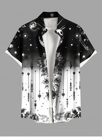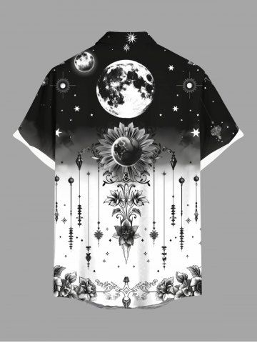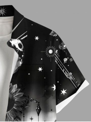 Plus Size Galaxy Sunflowers Star Ombre Print Buttons Pocket Hawaii Shirt For Men - Black - M