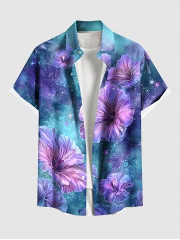Short Sleeves Shirts > Plus Size Galaxy Tie Dye Hibiscus Flowers Print Buttons Pocket Hawaii Shirt For Men