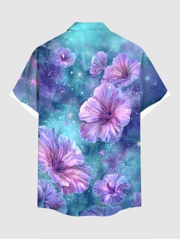 Plus Size Galaxy Tie Dye Hibiscus Flowers Print Buttons Pocket Hawaii Shirt For Men - Blue - 3xl
