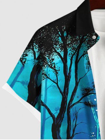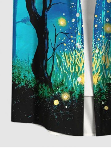 Plus Size Galaxy Tree Firefly Glitter 3D Print Buttons Pocket Shirt For Men - Black - L