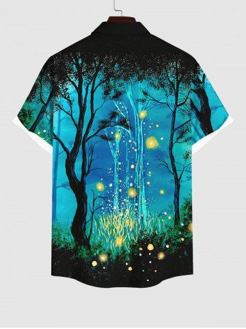 Short Sleeves Shirts > Plus Size Galaxy Tree Firefly Glitter 3D Print Buttons Pocket Shirt For Men