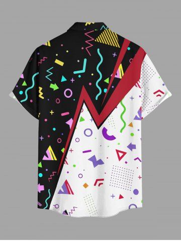 Plus Size Geometric Pattern Colorblock Print Buttons Pocket Hawaii Shirt For Men - Black - Xl