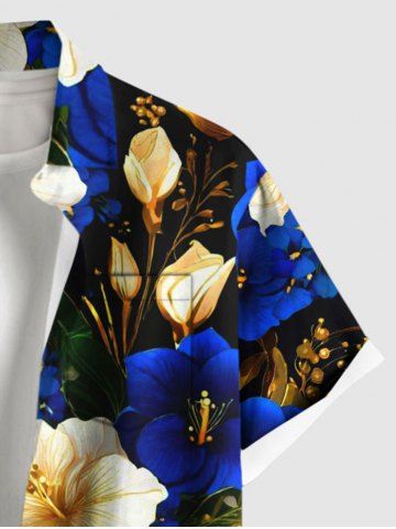 Plus Size Gilding Two Tone Hibiscus Flower Print Hawaii Button Pocket Shirt For Men - Blue - 6xl