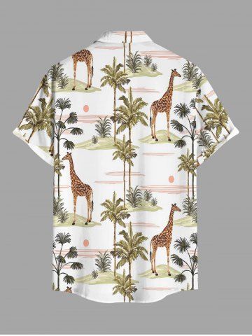 Plus Size Giraff Coconut Tree Sun Print Buttons Pocket Hawaii Shirt For Men - White - 5xl