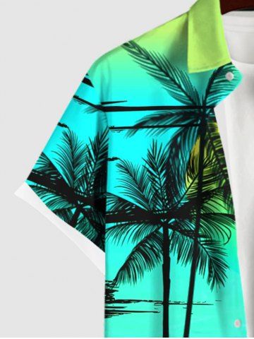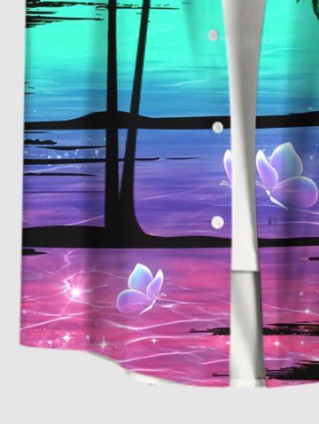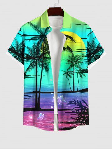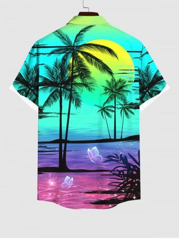 Plus Size Glitter Butterfly Ombre Sea Coconut Tree Sun Print Button Pocket Hawaii Shirt For Men - Multi-a - Xl