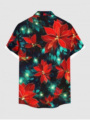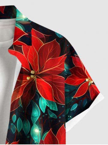 Short Sleeves Shirts > Plus Size Glitter Leaf Flower Print Hawaii Button Pocket Shirt For Men