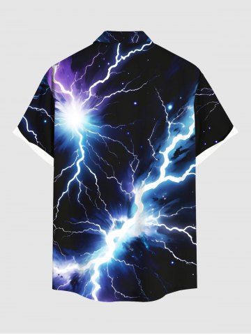 Short Sleeves Shirts > Plus Size Glitter Lightning Print Hawaii Button Pocket Shirt For Men