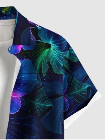 Plus Size Glitter Ombre Floral Tropical Leaves Print Hawaii Button Pocket Shirt For Men - Deep Blue - 2xl