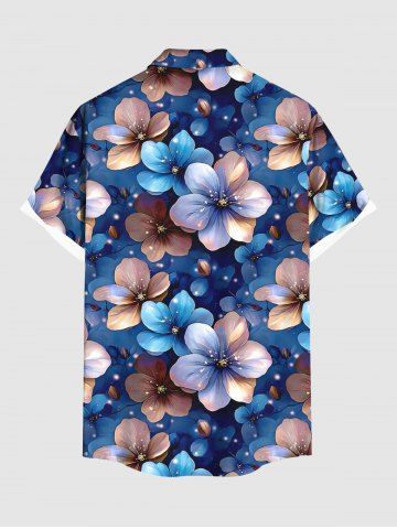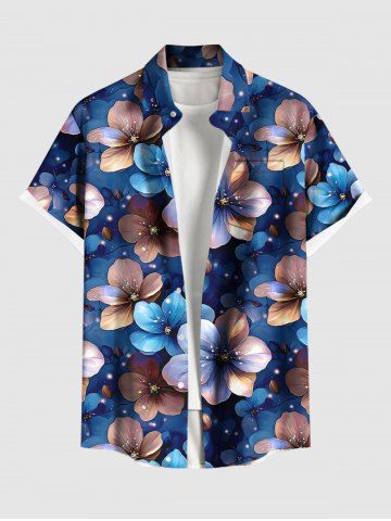 Plus Size Glitter Ombre Flower Print Hawaii Button Pocket Shirt For Men - Blue - S