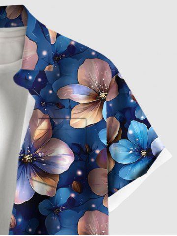 Plus Size Glitter Ombre Flower Print Hawaii Button Pocket Shirt For Men - Blue - 2xl
