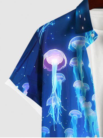 Plus Size Glitter Sailor Ombre Seabed Print Hawaii Sea Creatures Button Pocket Shirt For Men - Sky Blue - Xl