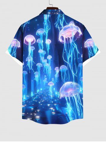Short Sleeves Shirts > Plus Size Glitter Sailor Ombre Seabed Print Hawaii Sea Creatures Button Pocket Shirt For Men
