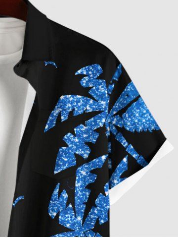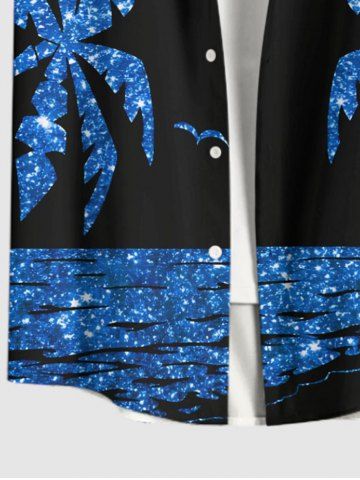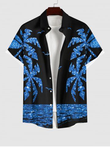 Plus Size Glitter Sequins Coconut Tree Sea Bird Print Hawaii Buttons Pocket Shirt For Men - Black - Xl