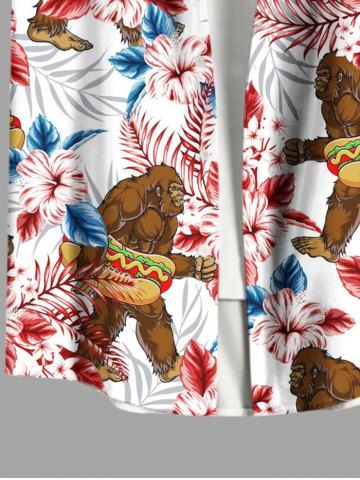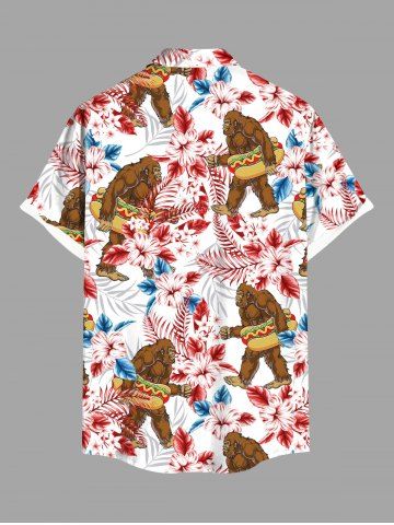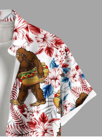 Plus Size Gorillar Hot Dog Hibiscus Flowers Print Buttons Pocket Hawaii Shirt For Men - Red - 2xl