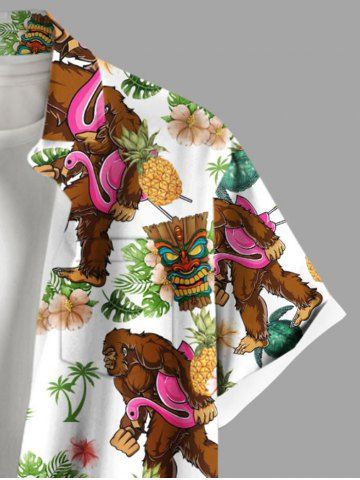 Plus Size Gorillas Coconut Tree Flowers Pineapple Masks Print Buttons Pocket Hawaii Shirt For Men - White - 6xl