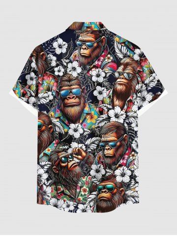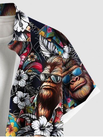 Plus Size Gorillas Tropical Flowers Print Buttons Pocket Hawaii Shirt For Men - Black - 6xl