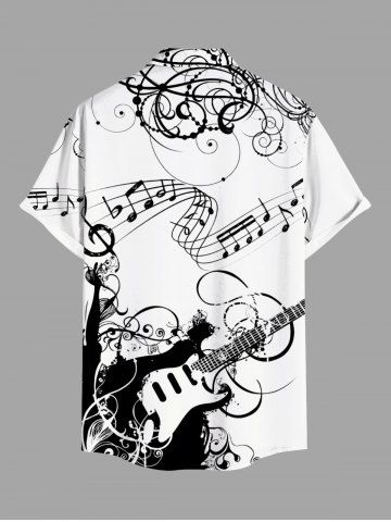 Plus Size Guitar Music Symbol Print Hawaii Button Pocket Shirt For Men - White - Xl