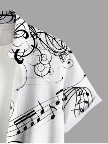 Plus Size Guitar Music Symbol Print Hawaii Button Pocket Shirt For Men - White - 2xl