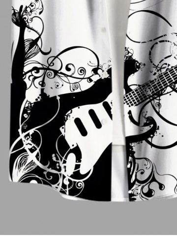 Plus Size Guitar Music Symbol Print Hawaii Button Pocket Shirt For Men - White - 6xl