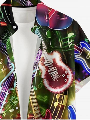 Plus Size Guitar Music Symbol Rock and Roll Print Hawaii Button Pocket Shirt For Men - Black - 5xl