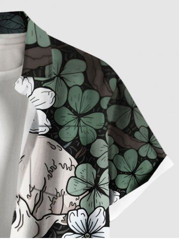 Short Sleeves Shirts > Plus Size Halloween Skull Flowers Leaf Print Buttons Pocket Shirt For Men