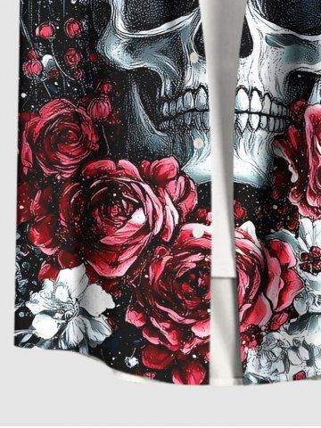 Plus Size Halloween Skull Flowers Print Buttons Pocket Shirt For Men - Black - S