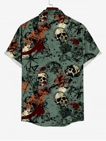 Plus Size Halloween Skulls Blood Paint Splatter Print Buttons Pocket Shirt For Men - Green - Xl