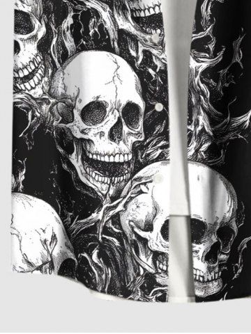 Plus Size Halloween Skulls Print Buttons Pocket Shirt For Men - Black - 2xl