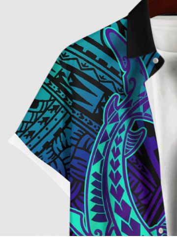 Plus Size Hammerhead Shark Floral Paisley Print Buttons Pocket Hawaii Shirt For Men - Multi-a - M