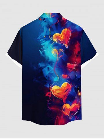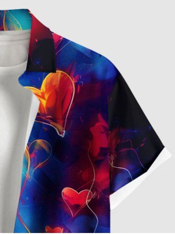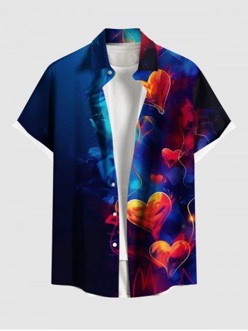 Short Sleeves Shirts > Plus Size Heart Balloon Ombre Print Valentines Hawaii Button Pocket Shirt For Men