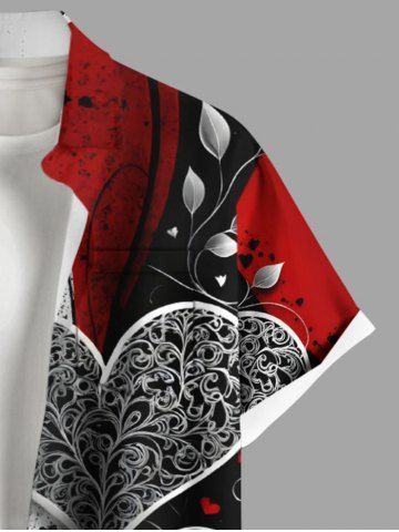 Plus Size Heart Ink Painting Splatter Curve Print Hawaii Button Pocket Shirt For Men - Multi - Xl