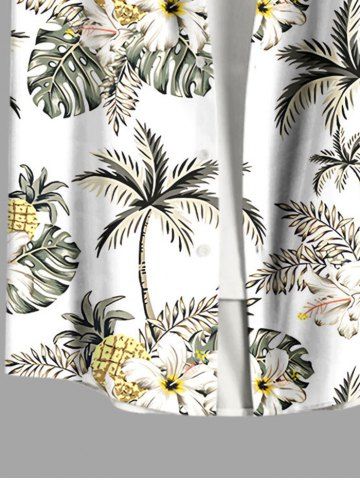 Plus Size Hibiscus Flower Coconut Tree Pineapple Print Buttons Pocket Hawaii Shirt For Men - White - S