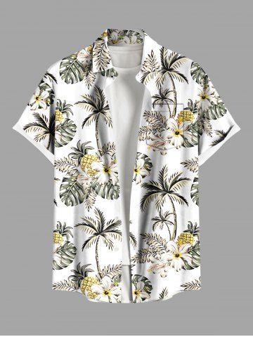 Plus Size Hibiscus Flower Coconut Tree Pineapple Print Buttons Pocket Hawaii Shirt For Men - White - 6xl