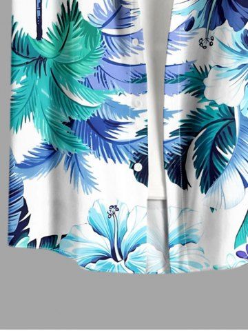 Plus Size Hibiscus Flower Coconut Tree Print Buttons Pocket Hawaii Shirt For Men - Cadetblue - 2xl