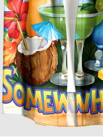 Short Sleeves Shirts > Plus Size Hibiscus Flower Coconut Tropical Leaf Juice Print Hawaii Buttons Pocket Shirt For Men