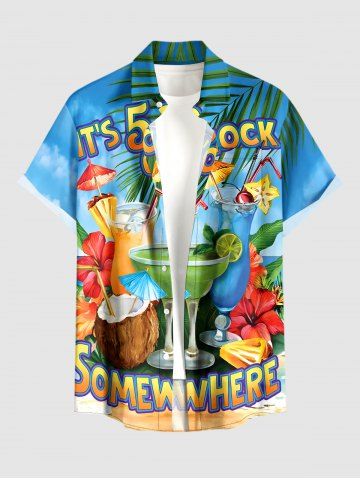 Plus Size Hibiscus Flower Coconut Tropical Leaf Juice Print Hawaii Buttons Pocket Shirt For Men - Sky Blue - 4xl