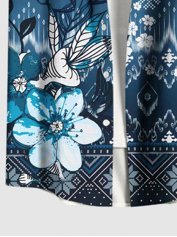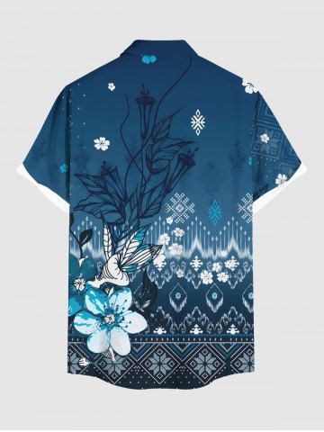 Plus Size Hibiscus Flower Ethnic Graphic Print Hawaii Button Pocket Shirt For Men - Blue - S