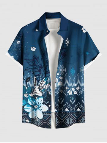 Short Sleeves Shirts > Plus Size Hibiscus Flower Ethnic Graphic Print Hawaii Button Pocket Shirt For Men