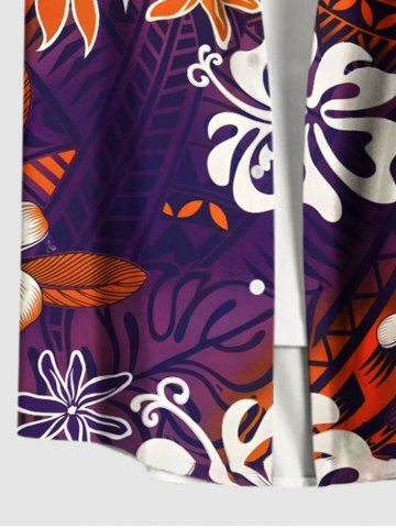 Plus Size Hibiscus Flower Ethnic Print Hawaii Ombre Button Pocket Shirt For Men - Purple - 5xl