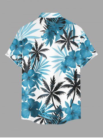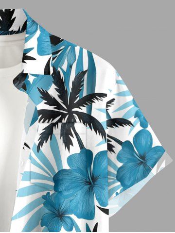Plus Size Hibiscus Flower Leaf Coconut Tree Print Buttons Pocket Hawaii Shirt For Men - Light Blue - 3xl