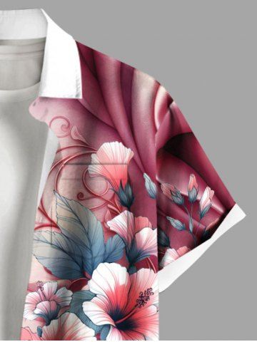 Plus Size Hibiscus Flower Leaf Ombre Colorblock Print Buttons Pocket Hawaii Shirt For Men - Light Pink - 6xl